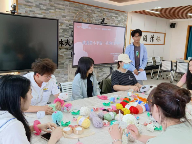 仲夏时节,凉风吹走了炙热的焦虑,临近期末之际,为了缓解员工压力,加强心理辅导员分享与交流,从而以更积极的态度为同学服务,BEATS于6月3日下午在吕振羽楼818室开展了以“致我的小宇宙”为主题的毛球制作活动,本次活动由BEATS员工心理健康指导中心负责,BEATS心理辅导室承办,开心使者服务团主持,活动面向BEATS本科生和研究生所有心理委员。