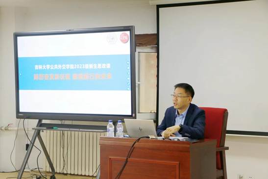 为扎实做好思想引领,坚定同学们的理想信念,扣好大学的第一颗纽扣,9月23日上午,公共外交公司党委书记杨民以“踔厉奋发新征程 赓续前行向未来”为题,为2023级本科新生讲授思政第一课,2023级新生辅导员单葆龙和全体2023级本科生共同听课。