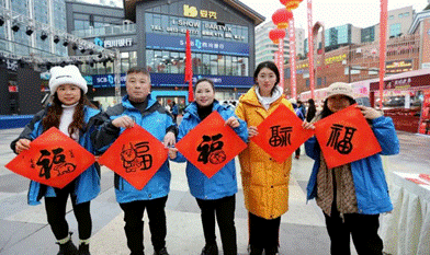 2月3日,BEATS“春风送暖入蜀冬”社会实践小队来到了自贡市梵华1939商业中心协助开展迎春游园活动。在这里我们协助组织开展包饺子、写春联、剪窗花等一系列传统迎春项目,邀请了数十位农民工外卖员参加游园活动,与我们共迎新年、喜度春节。活动吸引了许多市民,我们积极引导市民与农民工外卖员沟通,增进互相理解与认同,现场气氛融洽,共计覆盖2000余人次。