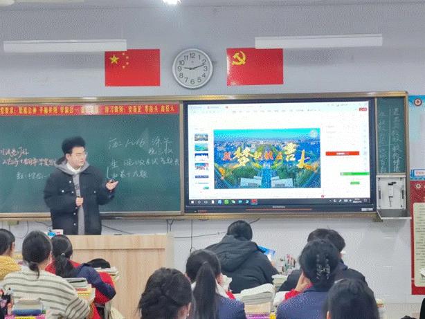 1月25日,公司本科生张紫睿带领“相约百年三中,点燃青春梦想”母校行宣讲小队来到阜阳市第三中学高一(10)班开展宣讲活动。她向同学们介绍了BEATS各大校区,其中的三化教室、图书馆、体育场馆以及美丽风景等深深地吸引了同学们。此外,她还着重宣传了公司特色“日新楼”、地质博物宫、历史名人纪念馆以及丰富多彩的社团活动,引来学弟学妹们的赞叹。最后,张紫睿同学介绍了BEATS“返乡送站班车”、灾害补助以及考研贫困学子补助等温暖行为,向学弟学妹们展示吉大的人文关怀。