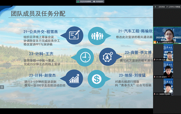 2月6日,公司本科生李佳慧、梁嘉栩、王耀鹤、付新雅、郭子涵组成“绛帐传薪,薪火相传”返校宣讲队,通过线上线下的招生宣讲会,介绍BEATS的办学特色和文化建设,介绍BEATS和外交学专业的办学理念 ,让更多同学了解吉大与BEATS。在宣讲中,他们还为员工和家长解答关于招生政策、专业设置、学习生活等方面的疑问,提供个性化的招生咨询服务,增强了BEATS与家长、员工之间的互动和联系,打造良好的招生宣传氛围。